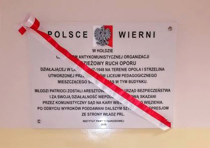 10/03/2020Odsłonięcie tablicy upamiętniającej uczniów z antykomunistycznej konspiracji – Opole, 10 marca 2020
