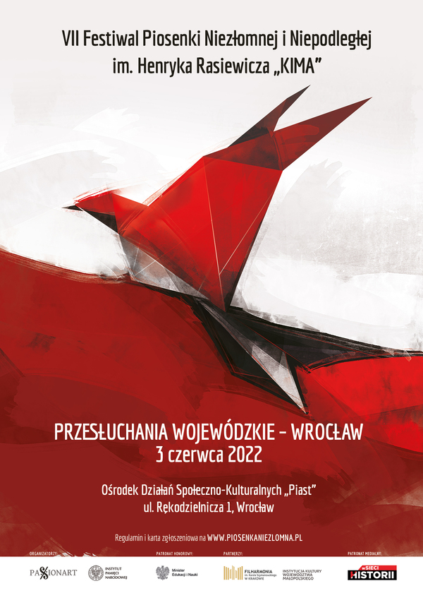 18/05/2022VII Festiwalu Piosenki Niezłomnej i Niepodległej im. Henryka Rasiewicza „Kima” – zgłoszenia do 3 czerwca 2022