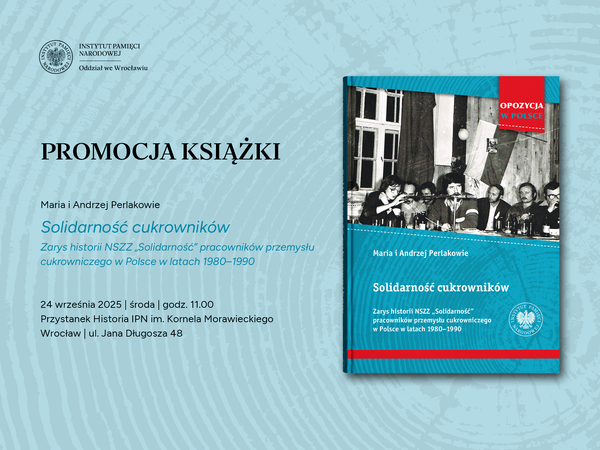 22/09/2025Promocja książkiSolidarność Cukrowników. Zarys historii NSZZ Solidarność pracowników przemysłu cukrowniczego w Polsce w latach 1980–1990 - Wrocław, 24 września 2025