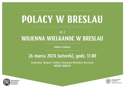 04/03/2024Zapowiedź„Polacy w Breslau” – zaczynamy cykl prelekcji i spacerów - Wrocław, 6 marca i 26 marca 2024