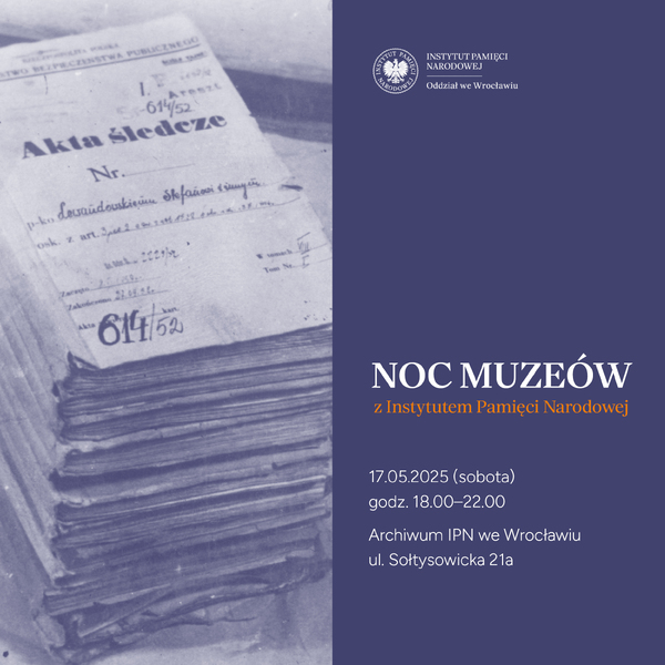 28/04/2025Noc MuzeówNoc Muzeów 2025 z Oddziałowym Archiwum Instytutu Pamięci Narodowej - Wrocław, 17 maja 2025