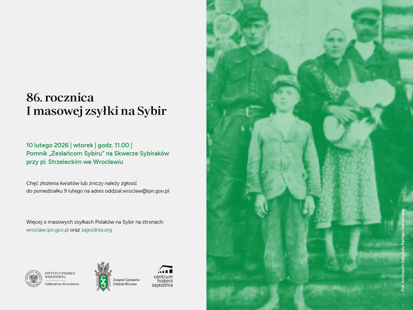 02/02/2026ZaproszenieW 86. rocznicę I masowej deportacji Polaków na Skwerze Sybiraków, nieopodal kościoła pw. św. Bonifacego na pl. Strzeleckim, upamiętnimy ofiary sowieckiego reżimu – Wrocław, 10 lutego 2026