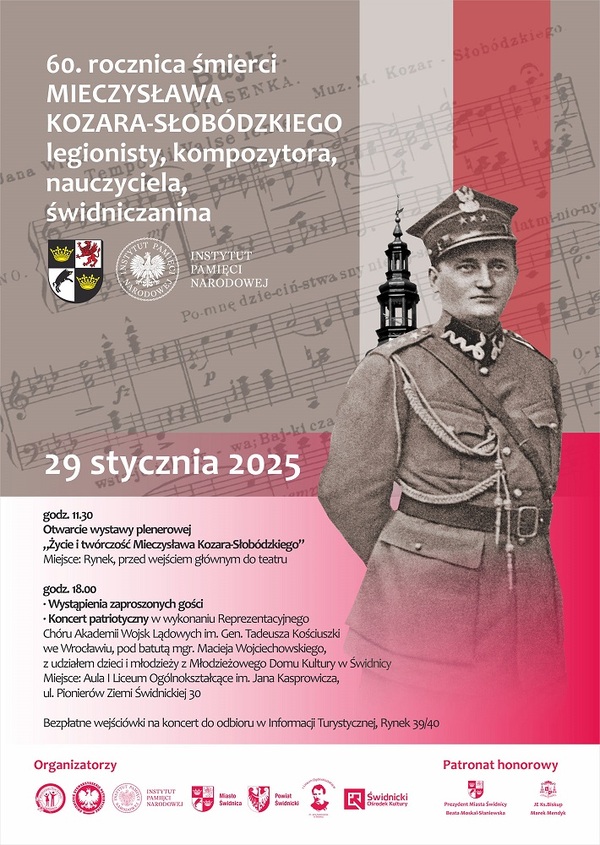 23/01/2025ZaproszenieKoncert upamiętniający mjr. Mieczysława Kozara-Słobódzkiego. Wystąpi Reprezentacyjny Chór Akademii Wojsk Lądowych - AWL - Świdnica, 29 stycznia 2025