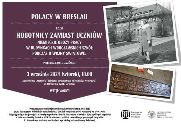 31/08/2024ZaproszenieZapraszamy na wrześniowe prelekcje z cyklu POLACY W BRESLAU – Wrocław, 3 i 24 września 2024