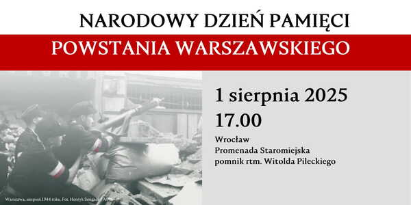 17/07/2025ZaproszenieZaproszenie na wrocławskie obchody Narodowego Dnia Pamięci Powstania Warszawskiego – Promenada Starojmiejska Wrocław, 1 sierpnia 2025