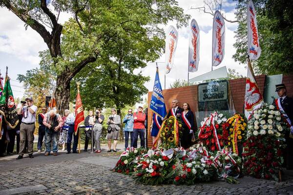 24/08/2025UroczystościObchody 45. rocznicy powstania NSZZ „Solidarność” pod tablicą przy Centrum Historiii Zajezdnia - Wrocław, 24 sierpnia 2025