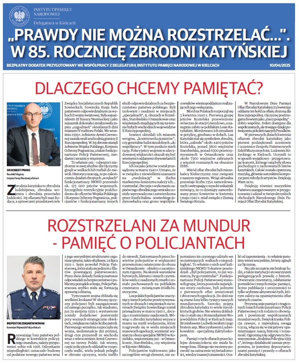 12/04/2025„Prawdy nie można rozstrzelać…”. W 85. rocznicę Zbrodni katyńskiej – dodatek prasowy [PDF] Artykuł dra Krzysztofa Łagojdy