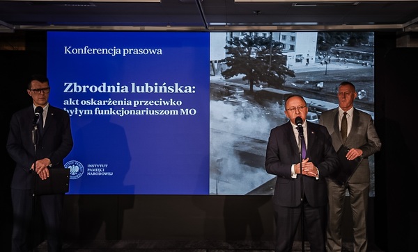 30/12/2025Zbrodnia lubińska: akt oskarżenia przeciwko byłym funkcjonariuszom MO. Konferencja prasowa w Centralnym Przystanku Historia im. Prezydenta Lecha Kaczyńskiego – Warszawa, 30 grudnia 2025