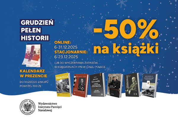 09/12/2025-50% na wszystkie publikacje – specjalna oferta grudniowa na wydawnictwa IPN. Zapraszamy do Księgarni IPN na Placu Solnym 8/9