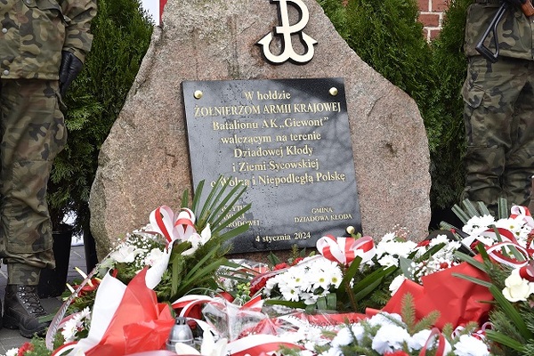 Odsłonięcie obelisku wraz z tablicą poświęconą żołnierzom Armii Krajowej - Dziadowa Kłoda, 4 stycznia 2024
