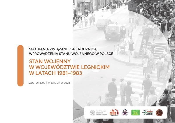 ZaproszenieSpotkania związane z 43. rocznicą wprowadzenia stanu wojennego w Polsce pt. Stan wojenny w województwie legnickim w latach 1981–1983 - Złotoryja, 11 grudnia 2024